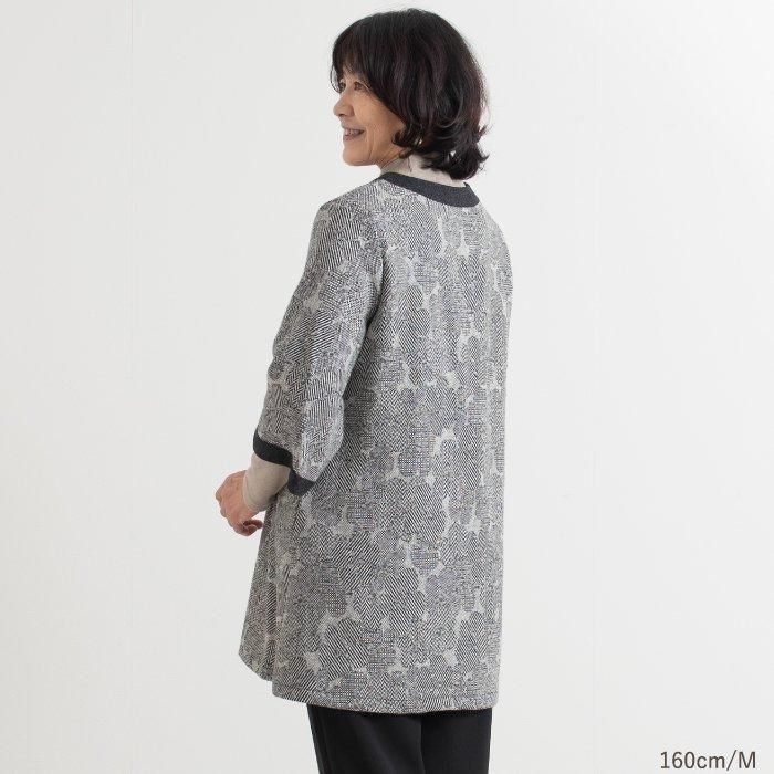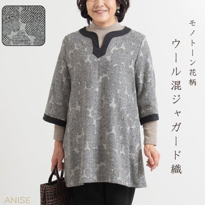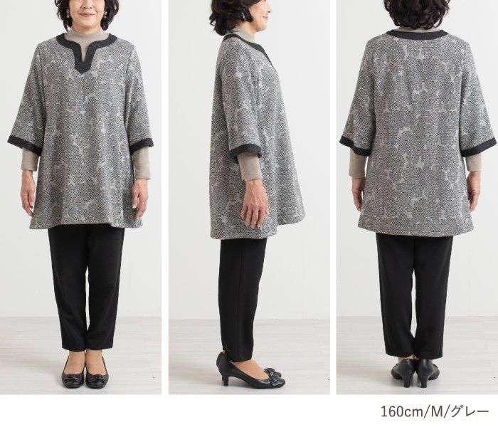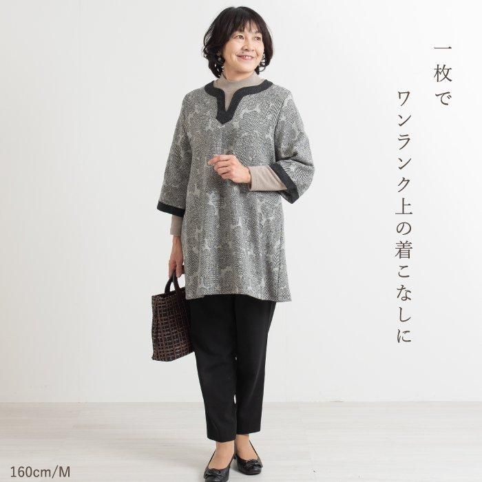 シックで上質感際立つジャガード素材(模様が立体的に見えるよう織られたもの)を使用した、モノトーンチュニック。