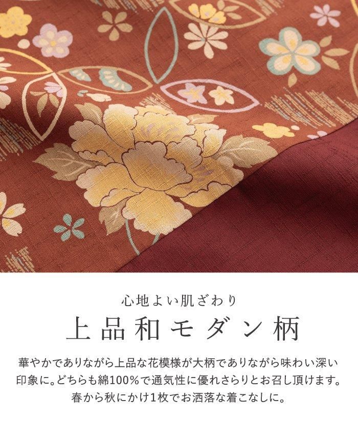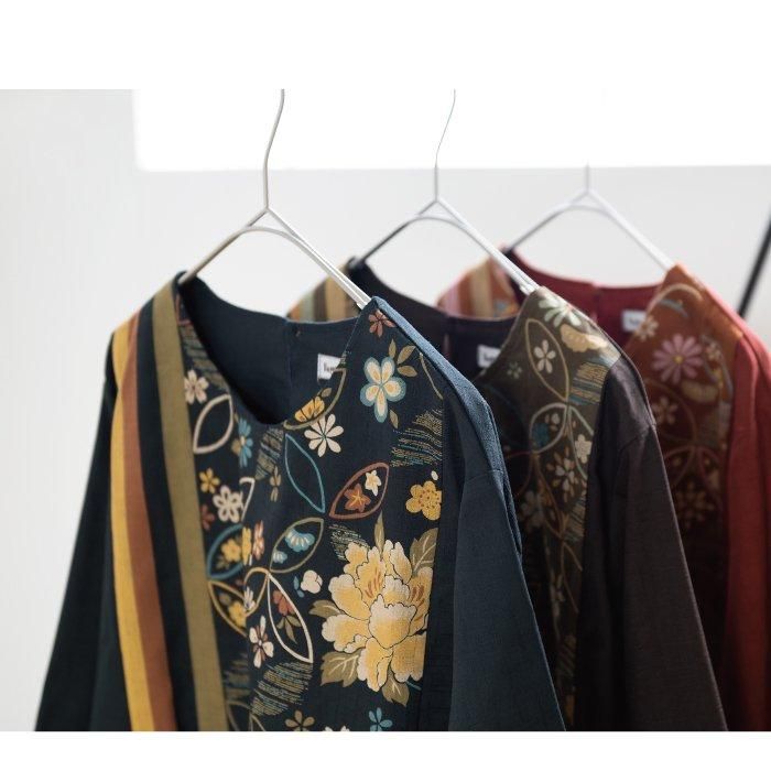 縞と花柄を組み合わせた華やかな和柄を切り替えた、コーディネートの主役になる1枚。 すっきりと見えるデザインを意識しつつ、ゆとりを感じる着心地にも意識しました。