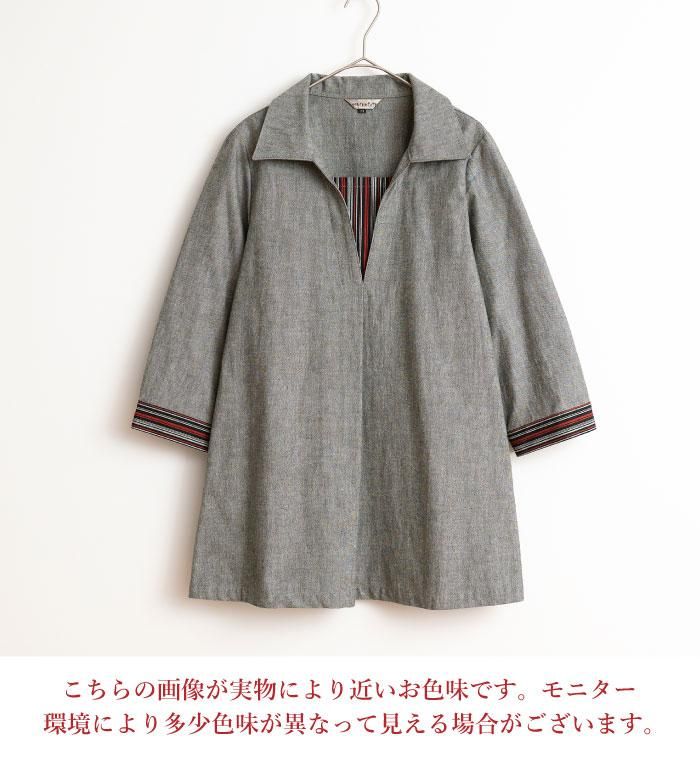 「播州織」とは兵庫から生まれた先染めの伝統織物で、世界が認める上質な肌触りが特徴。 着回ししやすい程良い厚みがあり、ところどころネップが混じった自然な風合いと深みのある色合い、他ではない素材感をお楽しみ頂けます