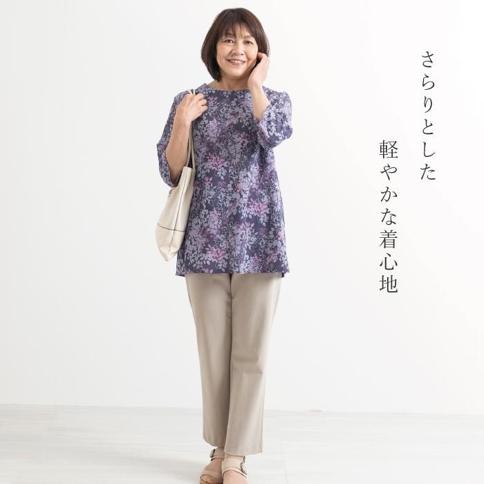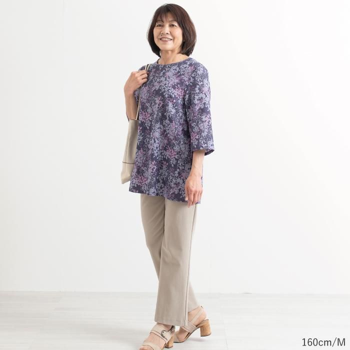 通気性も良くさらりとした肌ざわりで快適な素材感。おうち時間にもお出かけにもおすすめです。