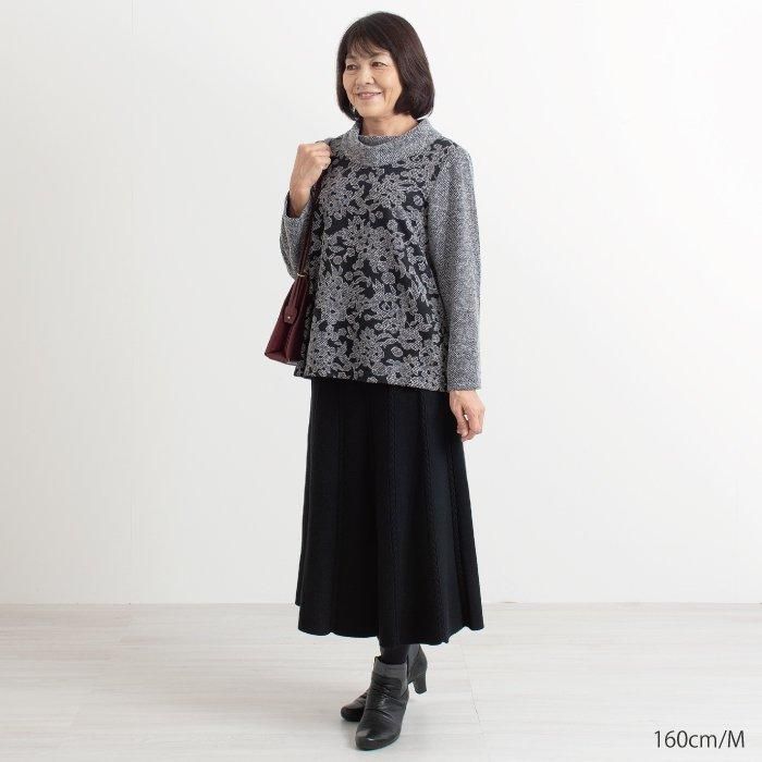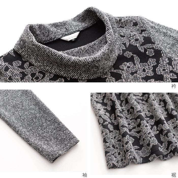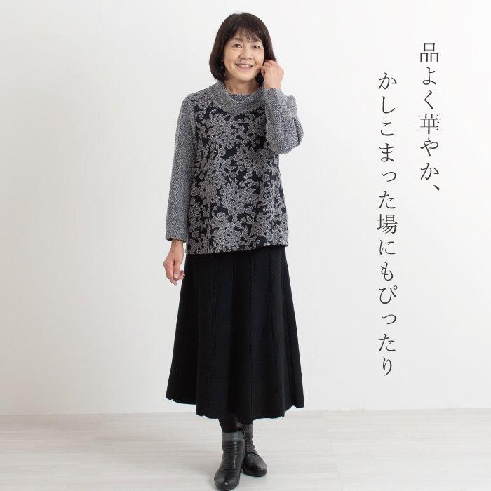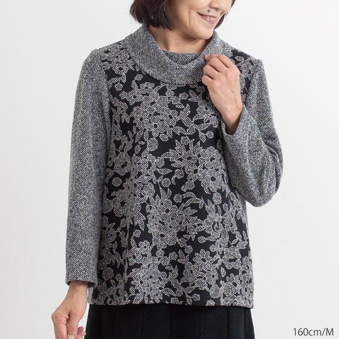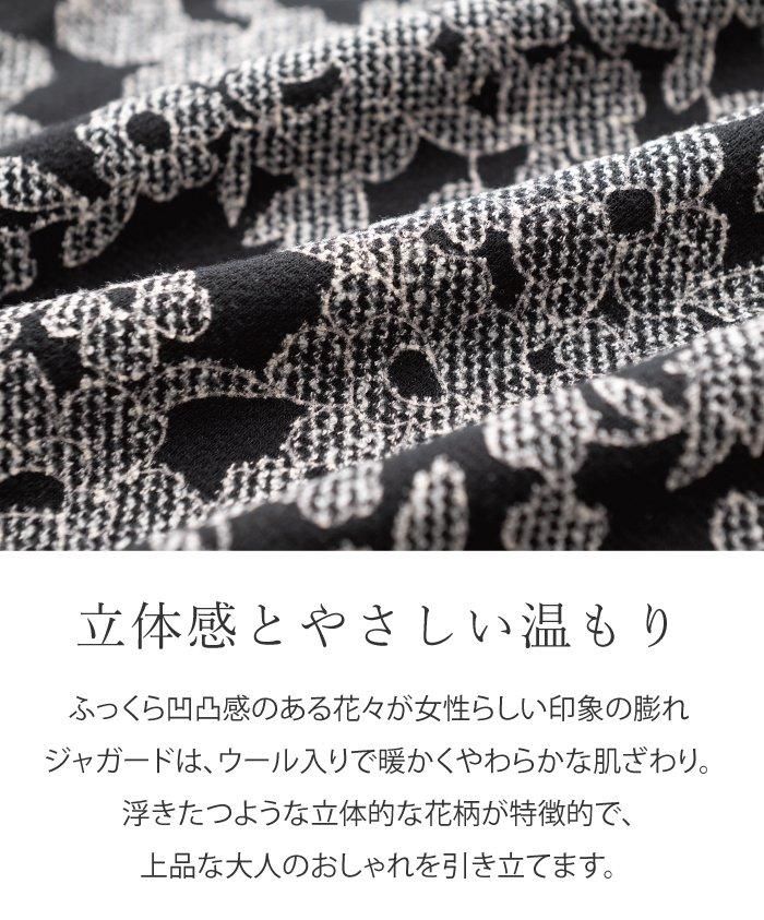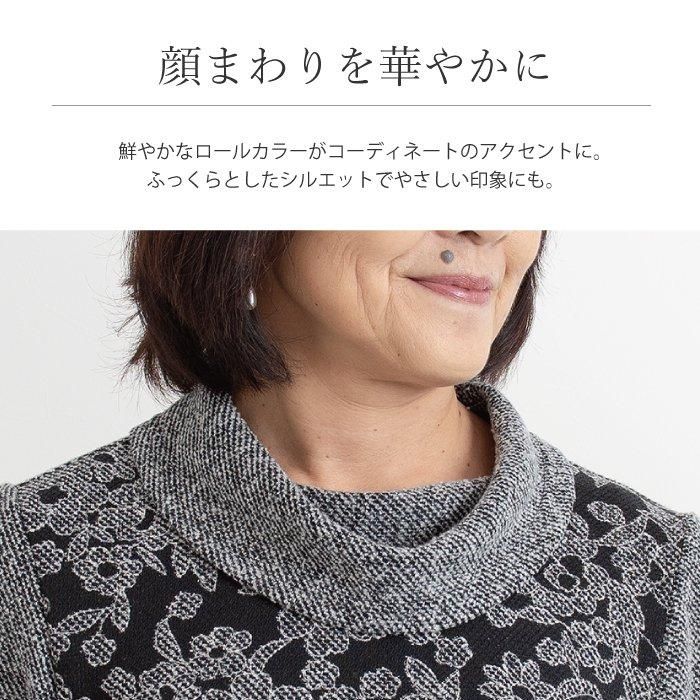 立体感とやわらかな温もりを持ったブークレー調生地を使用した、ふんわりロールカラーの大人チュニック。表面に凹凸があるブークレーは、触れるとふわっとやさしい肌ざわり。浮き立つような立体的な花柄が印象的で、上品な大人のおしゃれを引き立たせます。