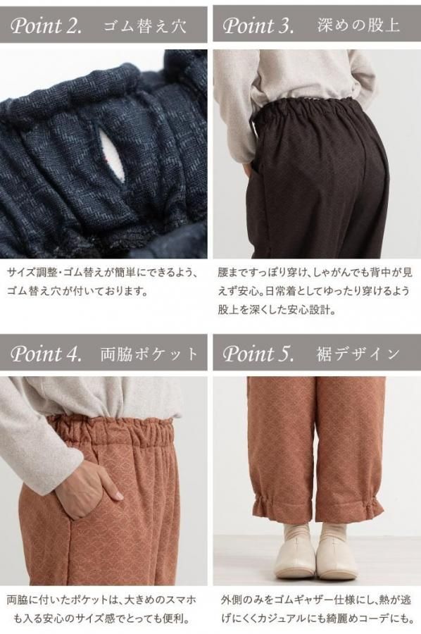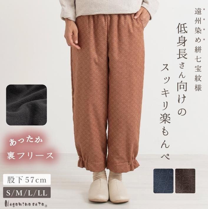 【あったか裏フリース 】股下57cm 低身長さん スッキリ 楽もんぺ