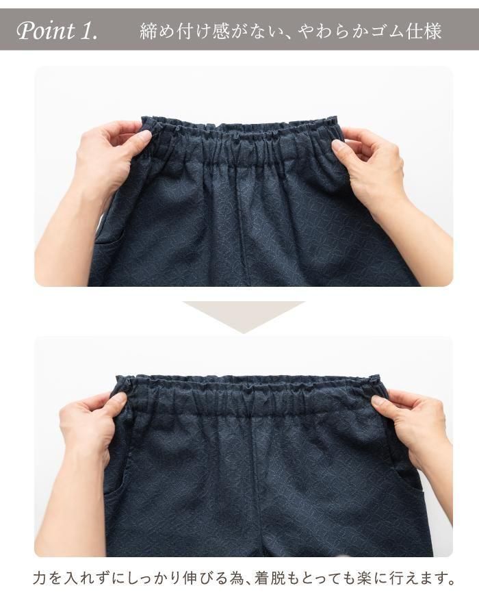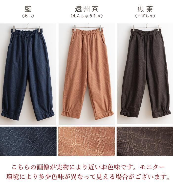 従来のもんぺより、ウエストの締め付け感も優しくフィットするように調整。※詳しくはサイズ表を参考にお選びください。 ご自分用はもちろん、贈り物にもおすすめです。