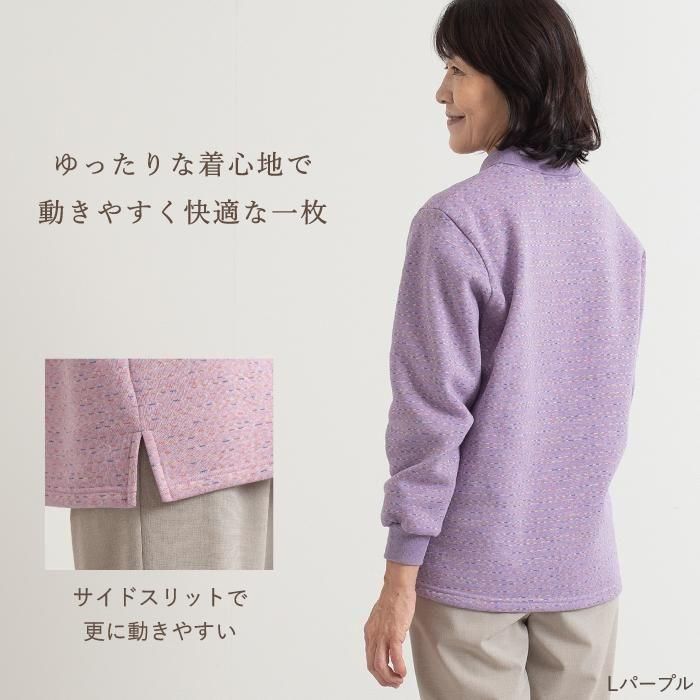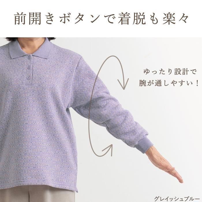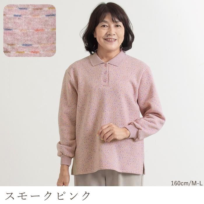 寒い季節には欠かせないあったかく、程よく肉厚な生地とふっくらな裏起毛が1つになったまいにちなごみオリジナルのポロシャツ。 程良く肉厚でふっくらと、とってもやわらかな肌ざわりなので贈り物にもおすすめです。 落ち着いた品のある杢調のベースカラーに、様々なカラー糸をボーダー柄に編み、程良く肉厚でふっくらとしたやわらか素材を使用。 しわになりにくくお手入れ楽々。両脇スリットで動きやすく、背中も腰回りもゆったりとした設計で快適な着心地です。
