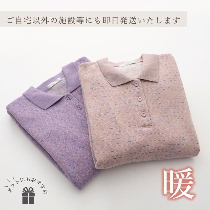 【即日発送 / 日本製】【冬物 / 長袖 / 裏起毛】あったか マルチボーダーニット 裏起毛ポロシャツ