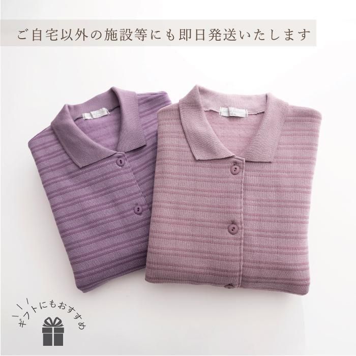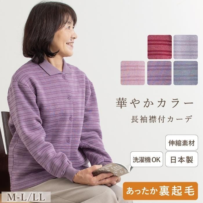 【即日発送 / 日本製】【冬物 / 長袖 / 裏起毛】華やかボーダー柄 裏起毛カーディガン