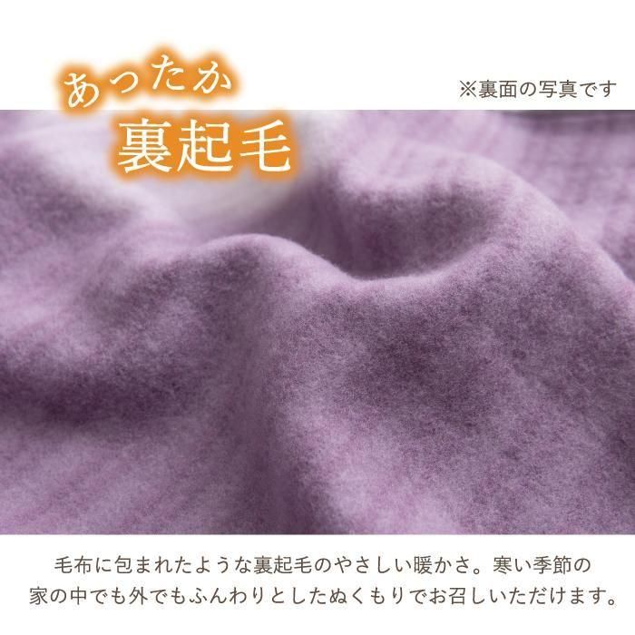 前開きボタンで着脱しやすく、背中も腰回りもゆったりとした設計で快適な着心地。毛布に包まれたようなやさしい暖かさで、寒い季節の家の中でも外でもふんわりとしたぬくもりでお召し頂けます。贈り物にもおすすめな1枚です。